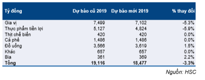 Bảng 5: Dự báo doanh thu năm 2019 Masan Consumer Holdings