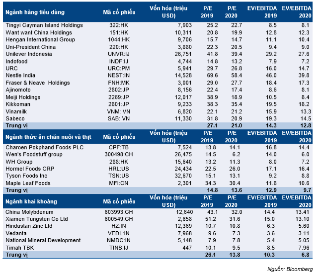- Sử dụng EV/EBITDA của các doanh nghiệp cùng ngành trong khu vực để so sánh, chúng tôi ước tính EV/EBITDA 2020 của MCH là 12,8 lần.