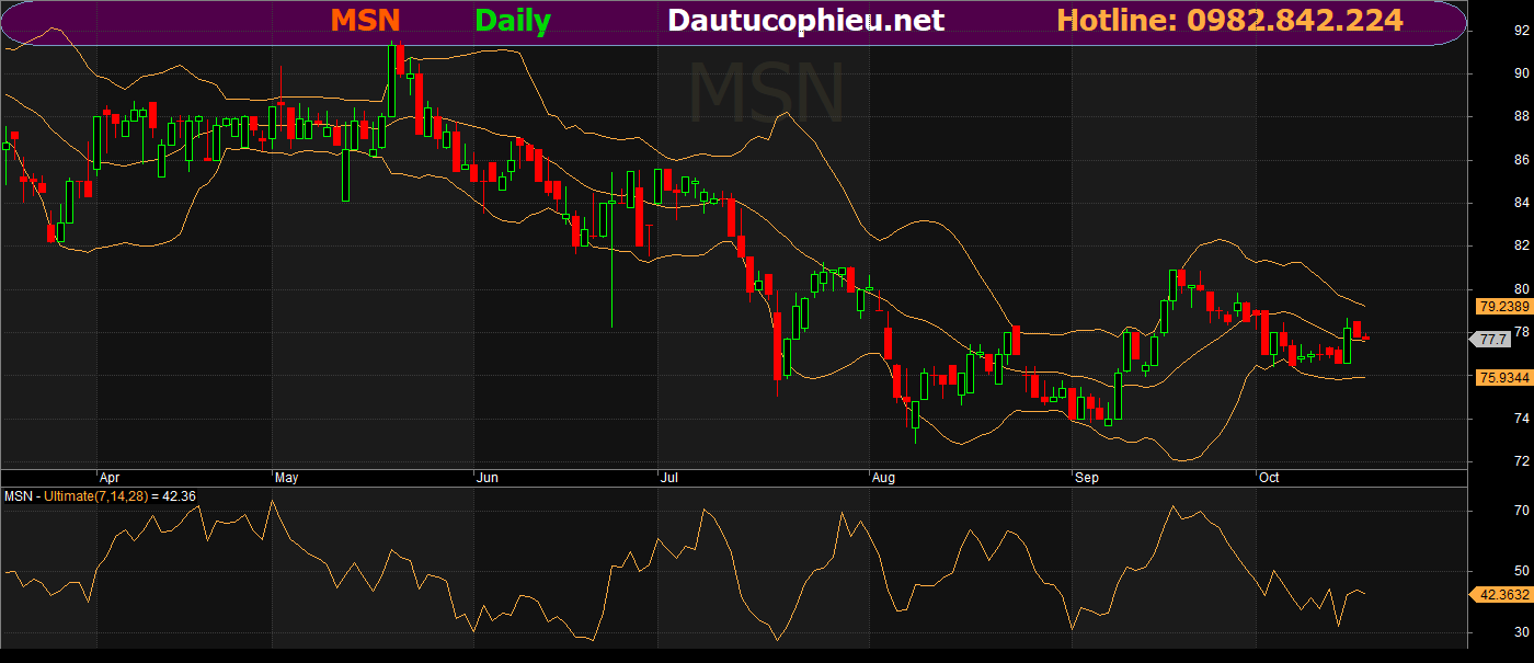 Đồ thị cổ phiếu MSN phiên giao dịch ngày 16/10/2019. Nguồn: AmiBroker