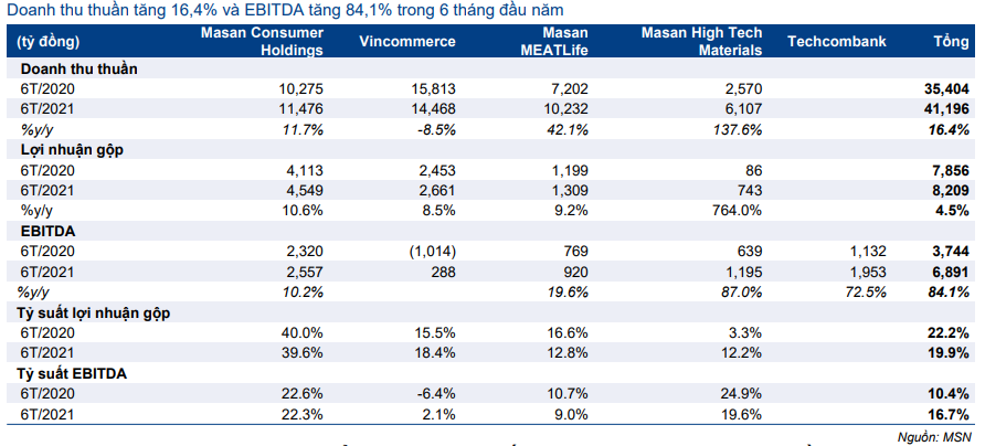 Ban lãnh đạo Cổ phiếu MSN dự kiến trong Q3/2021, doanh thu MCH sẽ tăng 45% so với cùng kỳ đạt 8.822 tỷ đồng, doanh thu VCM tăng 15% so với cùng kỳ đạt 7.864 tỷ đồng, doanh thu MML tăng 50% so với cùng kỳ đạt 4.210 tỷ đồng và doanh thu MHT (Masan High-Tech Materials) tăng 34% so với cùng kỳ đạt 3.354 tỷ đồng.