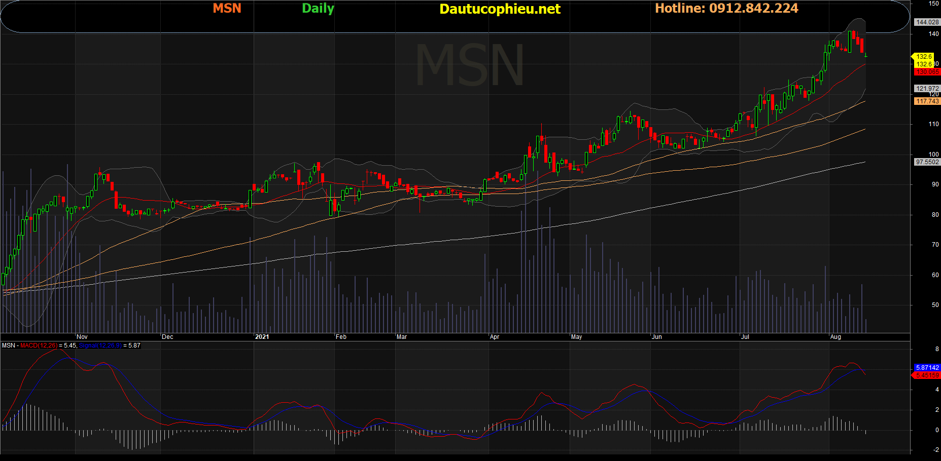 Đồ thị cổ phiếu MSN phiên giao dịch ngày 13/08/2021. Nguồn: AmiBroker