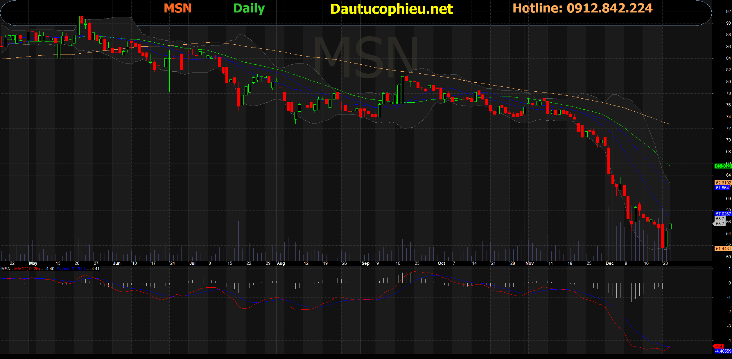 Đồ thị cổ phiếu MSN phiên giao dịch ngày 25/12/2019. Nguồn: AmiBroker.