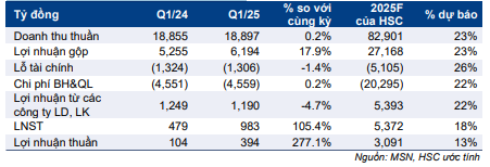 Bảng 1: KQKD hợp nhất Q1/2025, MSN