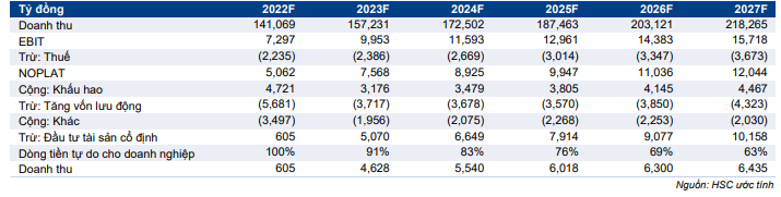 Bảng 14: Dòng tiền tự do cho doanh nghiệp, MWG
