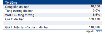 Bảng 15: Tính toán giá trị dài hạn, MWG