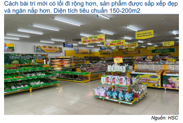 (2) Cải tạo 1.740 cửa hàng còn lại, quá trình đã được hoàn thành vào tháng trước. Những thay đổi lớn bao gồm loại bỏ 7 nhóm sản phẩm, mở rộng lối đi, sắp xếp lại quầy trưng bày và kệ hàng, chuyển toàn bộ hàng tươi sống sang khu vực điều hòa để đảm bảo chất lượng hàng hóa, chuẩn hóa quy trình tiếp cận khách hàng. Ngoài ra, hoạt động logistics gần đây đã được rà soát và nâng cấp để đảm bảo hoạt động kịp thời và hiệu quả.