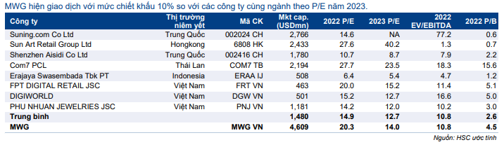 Nhờ KQKD chuỗi BHX cải thiện, HSC kỳ vọng KQKD của MWG cũng sẽ cải thiện so với quý trước và là động lực ngắn hạn đối với giá cổ phiếu. Trong dài hạn, tăng trưởng lợi nhuận trong năm 2023 và 2024 sẽ phụ thuộc chủ yếu vào KQKD của BHX, điều mà chúng tôi lạc quan hơn sau khi MWG thực hiện tái cơ cấu.
