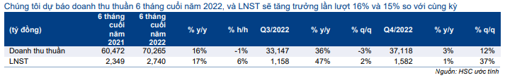 Lợi nhuận 6 tháng cuối năm 2022 được dự báo sẽ cải thiện 6% so với nửa đầu năm và 17% so với cùng kỳ.