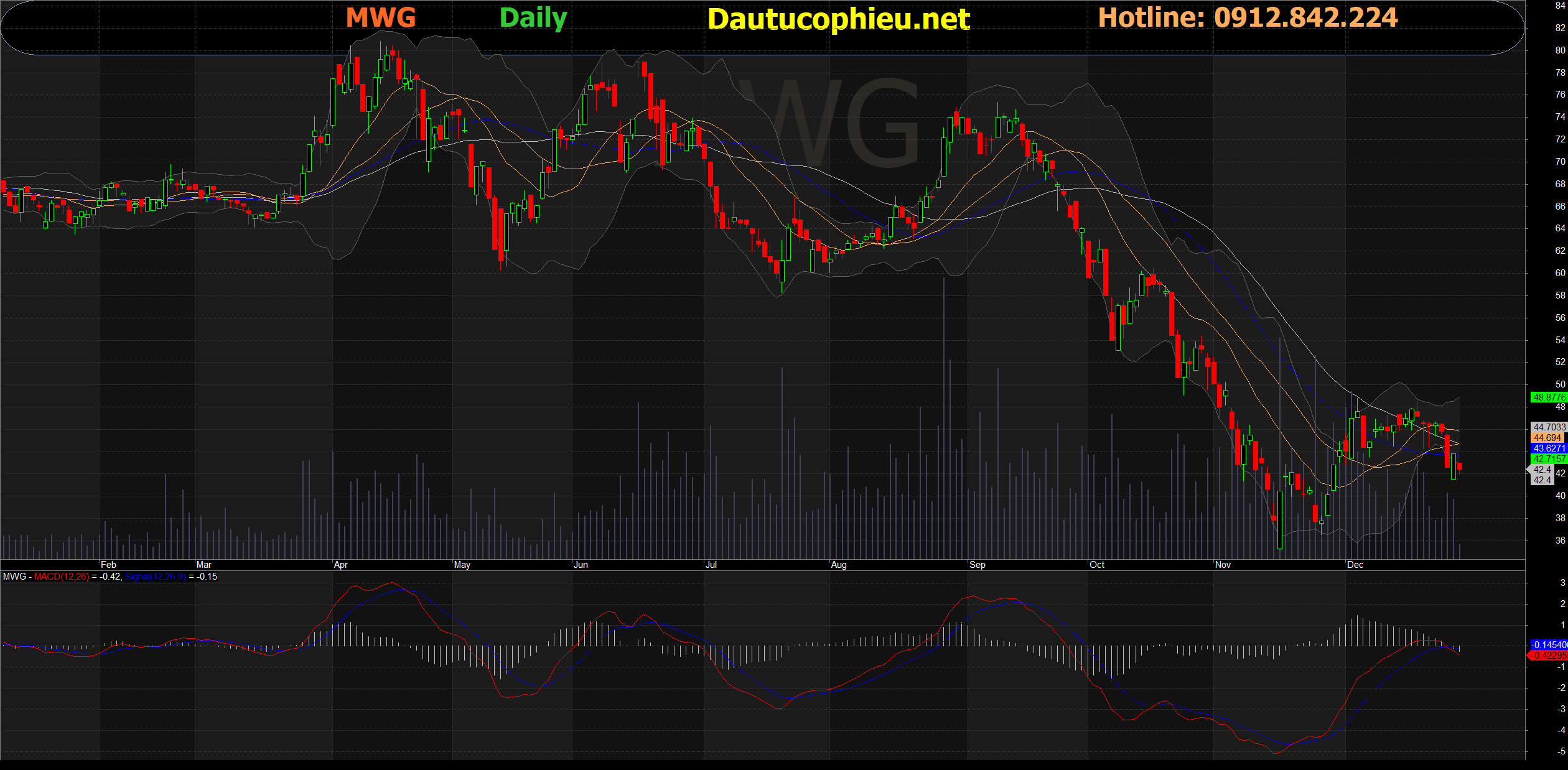 Đồ thị cổ phiếu MWG phiên giao dịch ngày 28/12/2022. Nguồn: AmiBroker