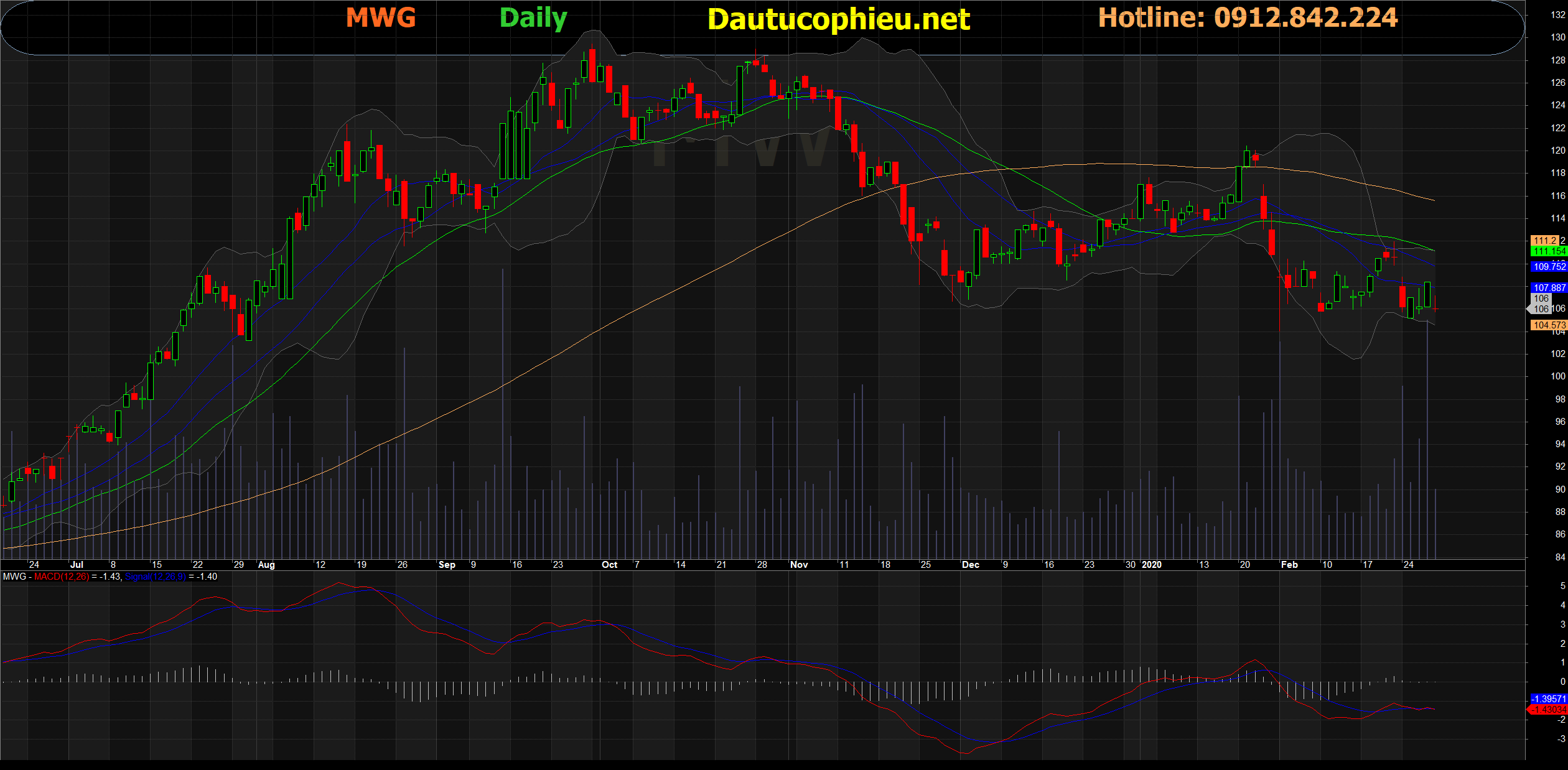 Đồ thị cổ phiếu MWG phiên giao dịch ngày 28/02/2020. Nguồn: AmiBroker.