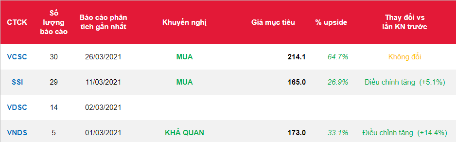 - CTCP Đầu tư Thế giới Di động (Cổ phiếu MWG) công bố KQKD 2 tháng năm 2021, bao gồm doanh thu đạt 21,7 nghìn tỷ đồng (+6% YoY) và LNST đạt 999 tỷ đồng (+18% YoY). KQKD này tương ứng doanh thu đạt 10,7 nghìn tỷ đồng (+34% YoY) và LNST đạt 505 tỷ đồng (+73% YoY) trong tháng 2/2021. Ngoài ra, KQKD này củng cố quan điểm của chúng tôi cho rằng lợi nhuận của MWG sẽ tăng mạnh trong năm 2021, đặc biệt khi KQKD 2 tháng năm 2020 chưa chịu ảnh hưởng đáng kể từ dịch COVID-19. Chúng tôi hiện có khuyến nghị MUA cho MWG với giá mục tiêu 214.100 đồng/CP, tương ứng tổng mức sinh lời dự phóng 65,8%, bao gồm lợi suất cổ tức 1,2%, dựa theo giá đóng cửa hôm nay.