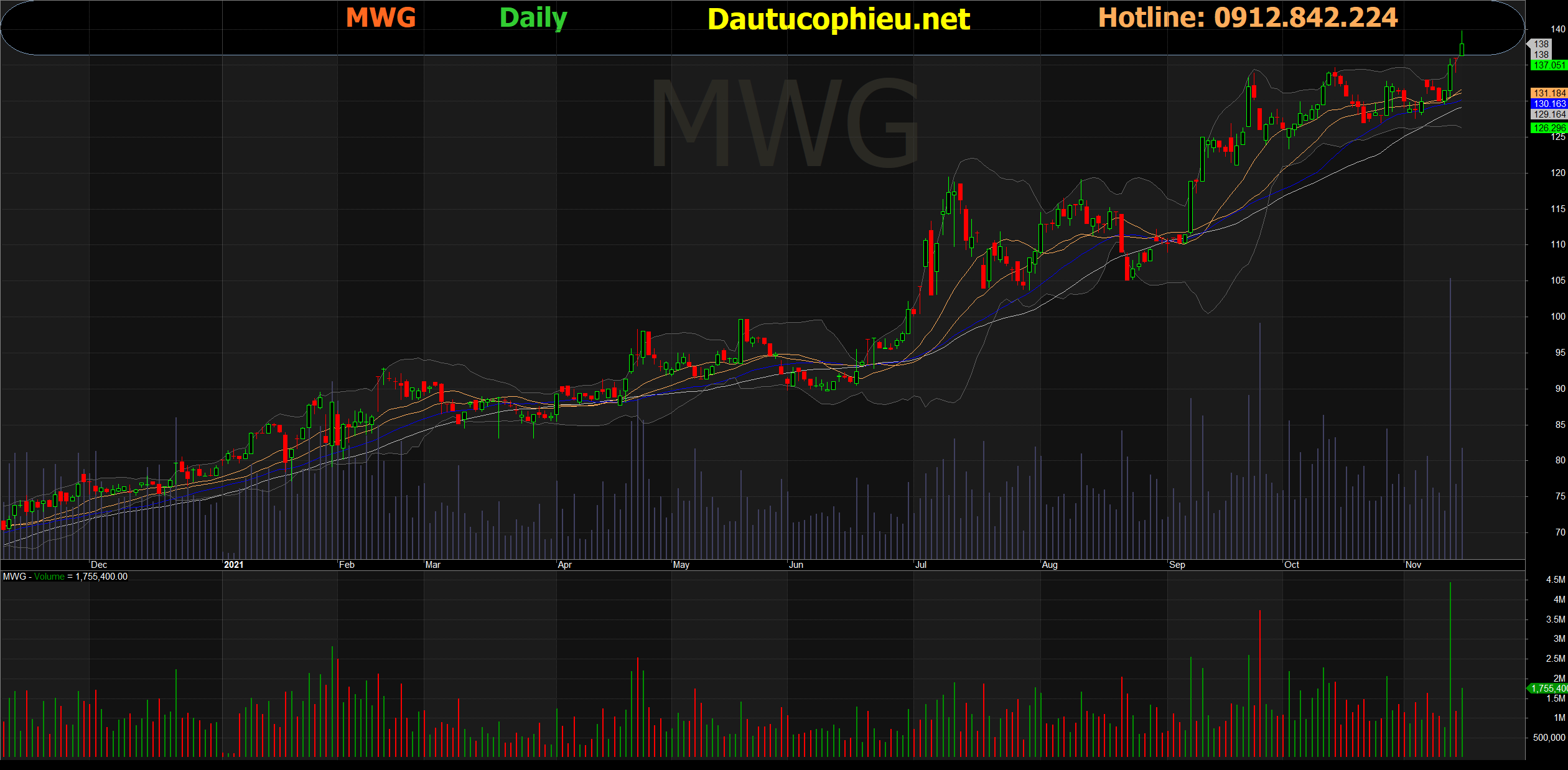 Đồ thị cổ phiếu MWG phiên giao dịch ngày 15/11/2021. Nguồn: AmiBroker
