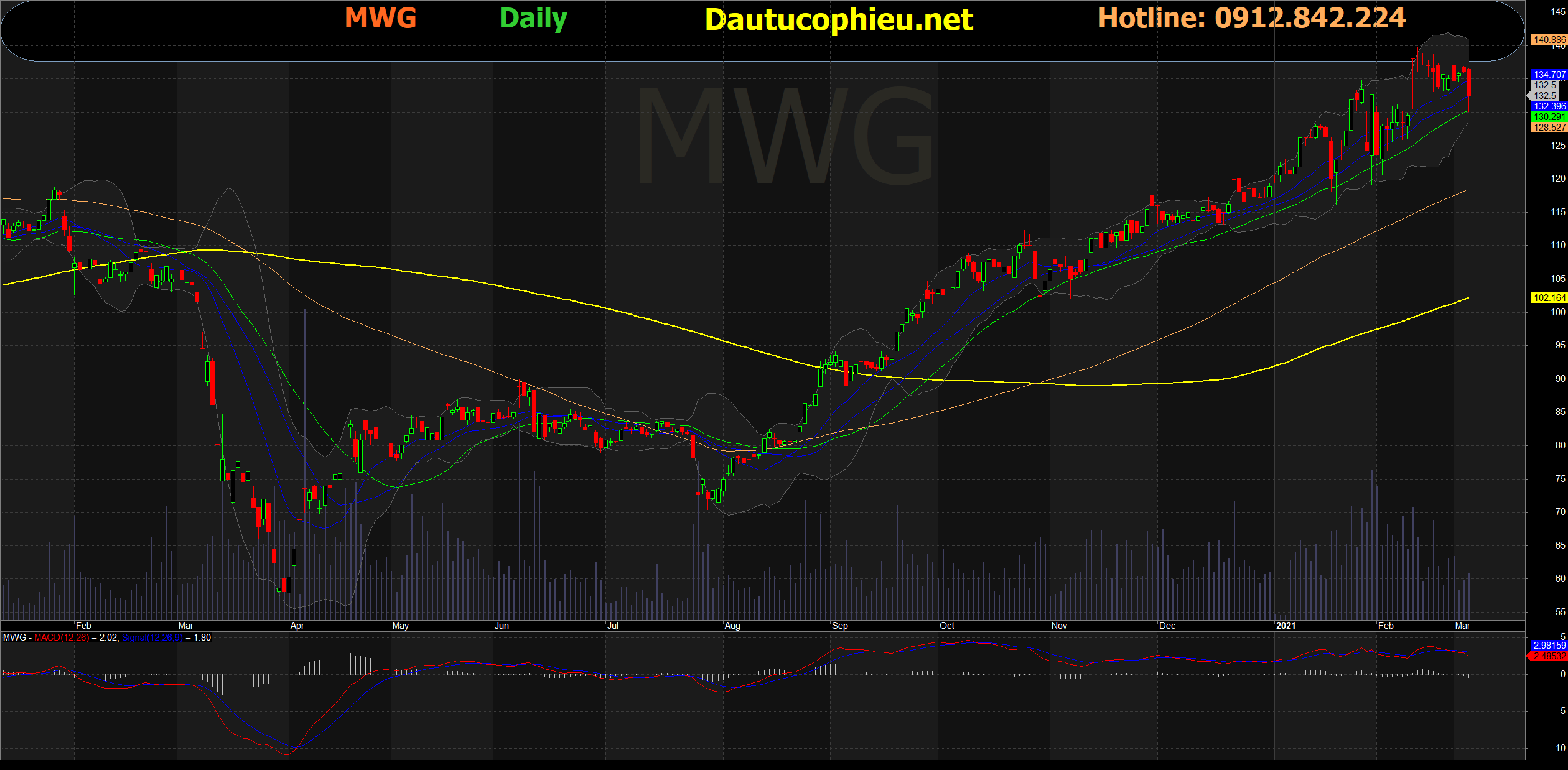 Đồ thị cổ phiếu MWG phiên giao dịch ngày 04/03/2021. Nguồn: AmiBroker