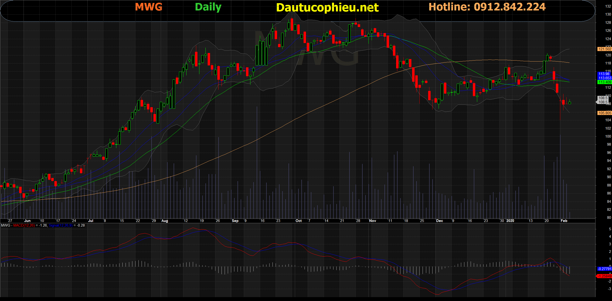 Đồ thị cổ phiếu MWG phiên giao dịch ngày 06/02/2020. Nguồn: AmiBroker