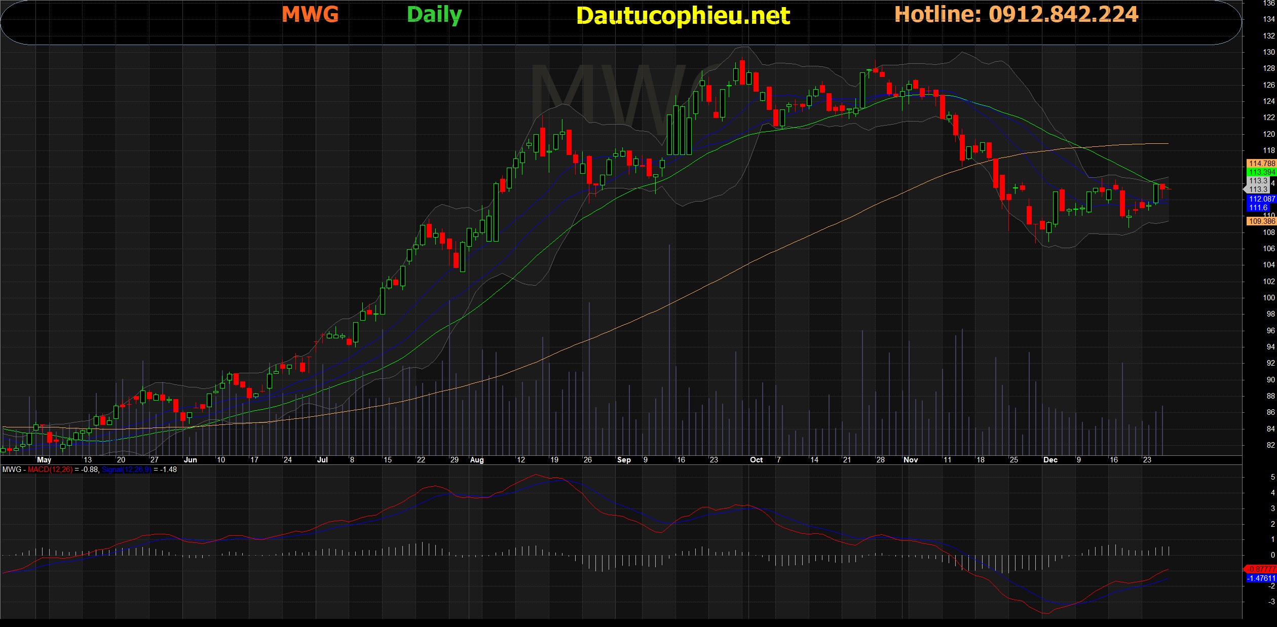 Đồ thị cổ phiếu MWG phiên giao dịch ngày 26/12/2019. Nguồn: AmiBroker