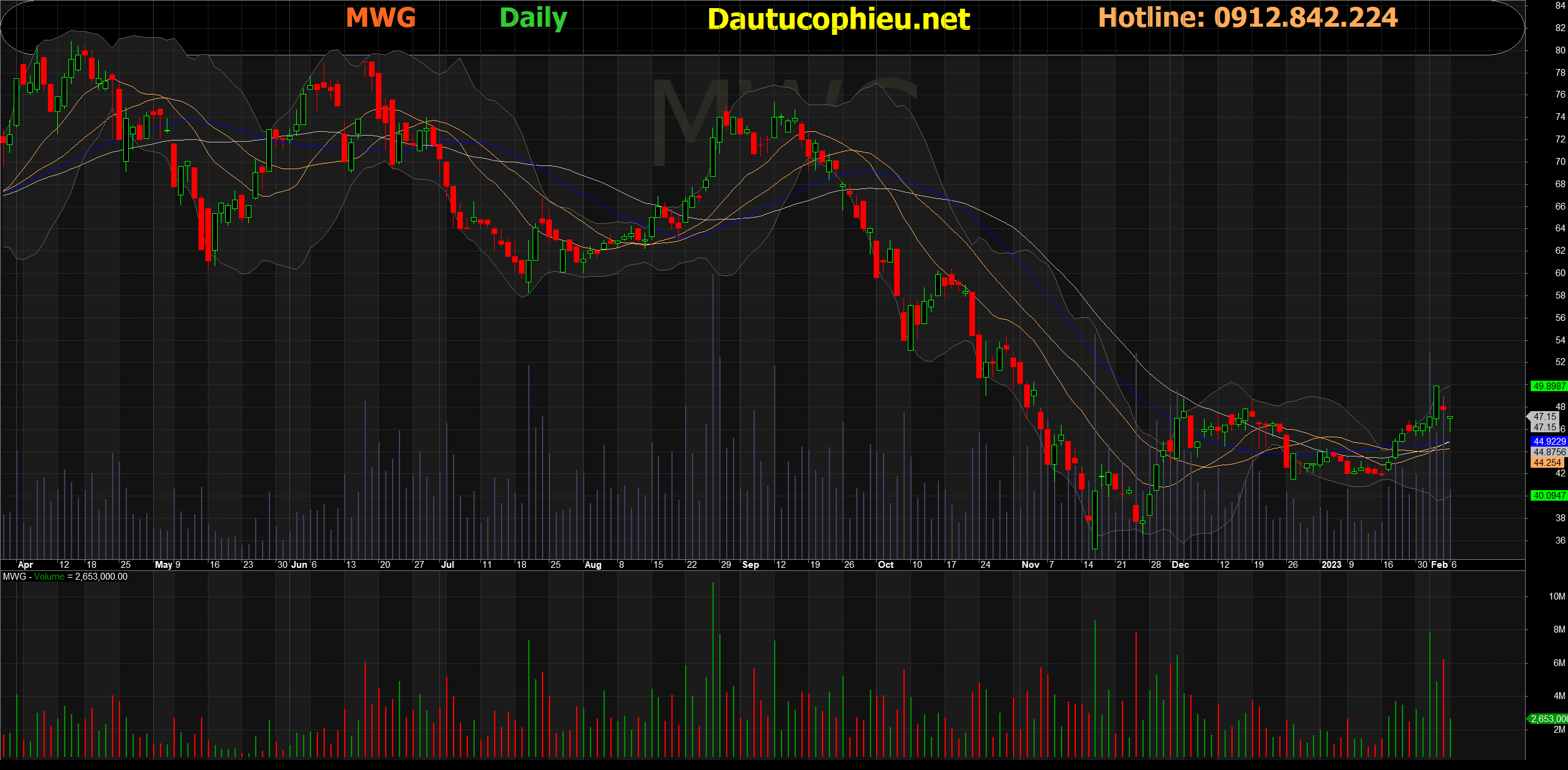 Đồ thị cổ phiếu MWG phiên giao dịch ngày 06/02/2023. Nguồn: AmiBroker