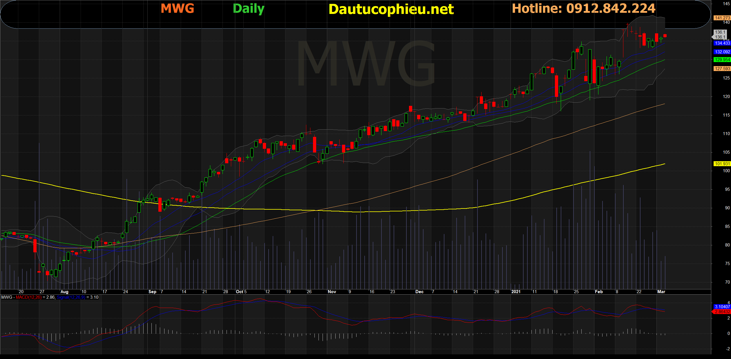 Đồ thị cổ phiếu MWG phiên giao dịch ngày 03/03/2021. Nguồn: AmiBroker