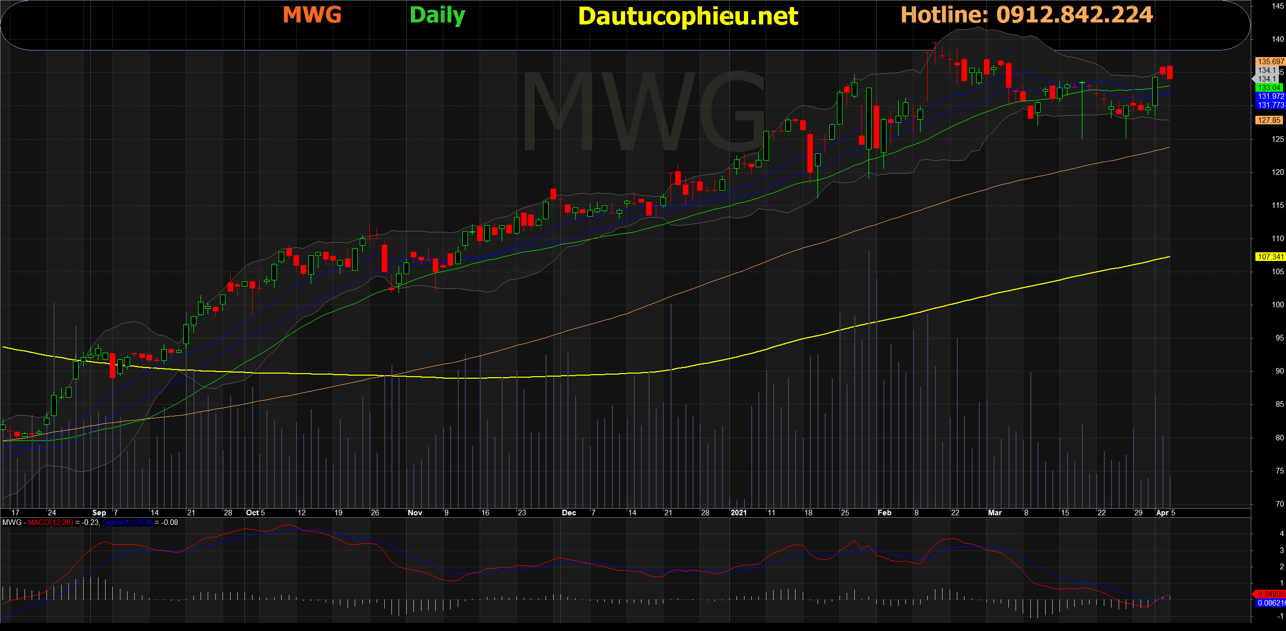 Đồ thị cổ phiếu MWG phiên giao dịch ngày 05/04/2021. Nguồn: AmiBroker