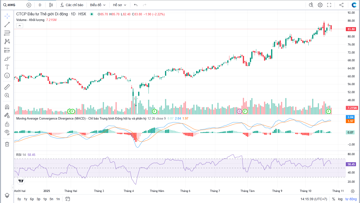 Đồ thị cổ phiếu MWG phiên giao dịch ngày 27/10/2025