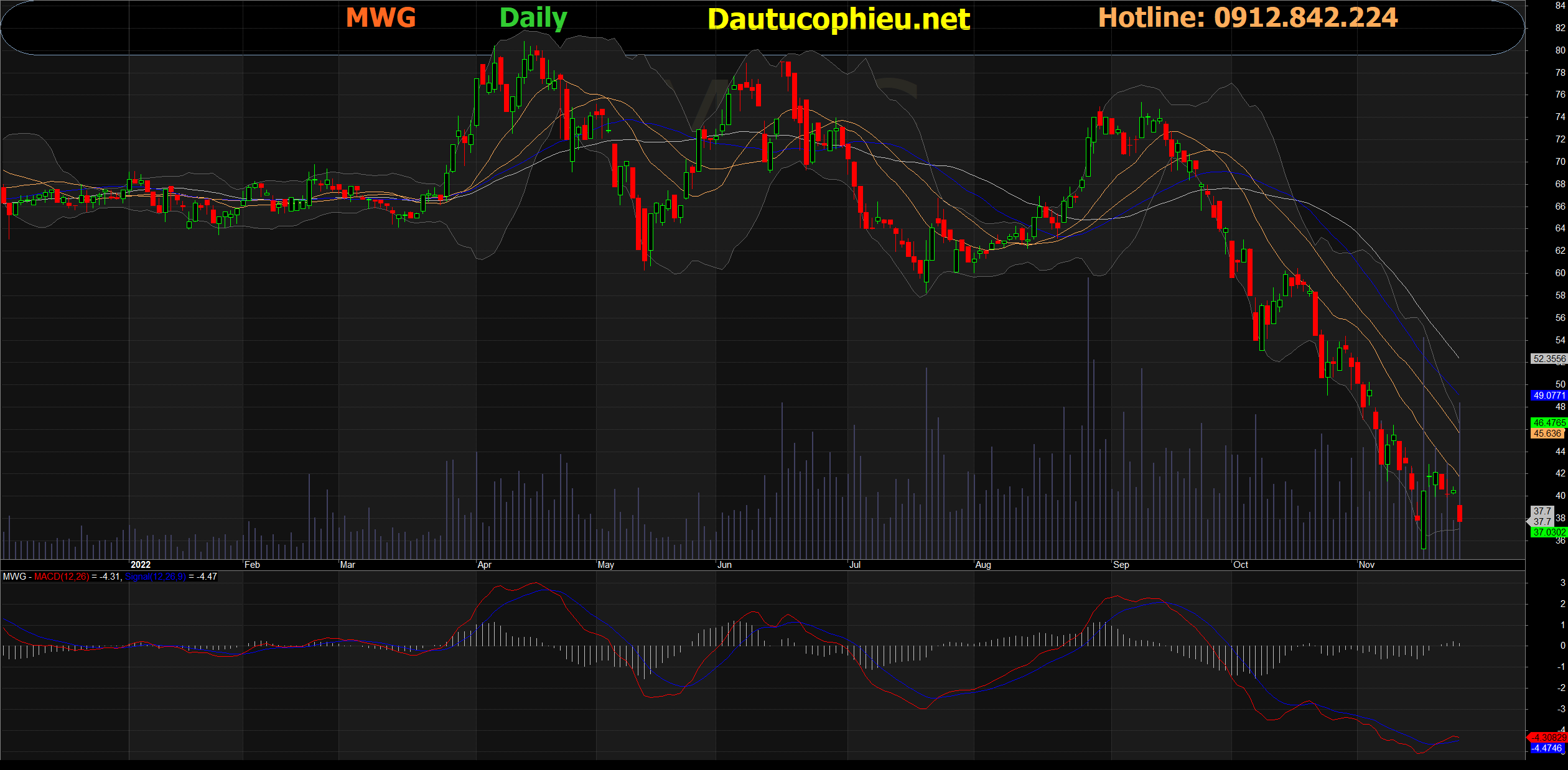 Đồ thị cổ phiếu MWG phiên giao dịch ngày 24/11/2022. Nguồn: AmiBroker