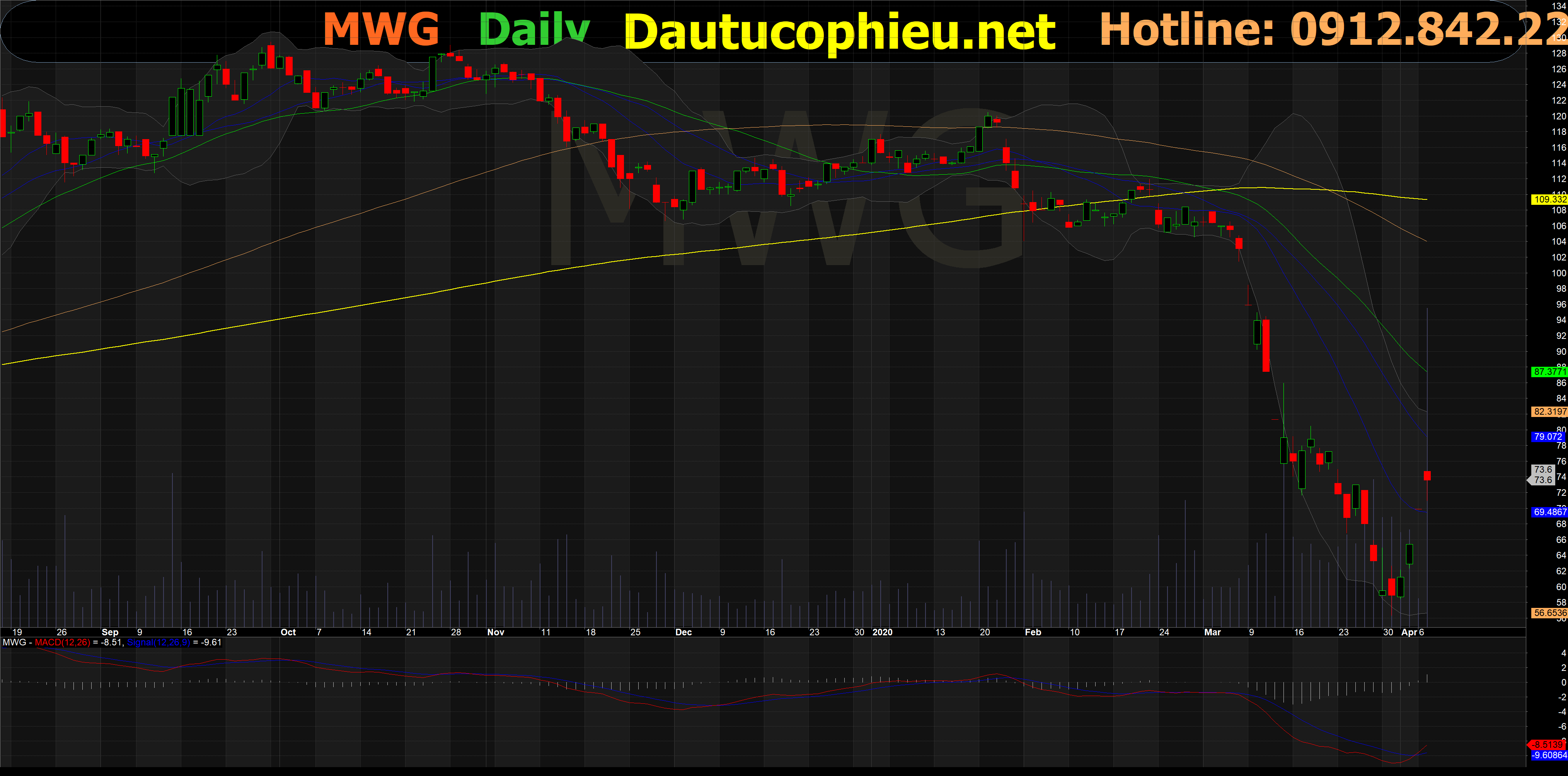 Đồ thị cổ phiếu MWG phiên giao dịch ngày 07/04/2020. Nguồn: Amibroker.