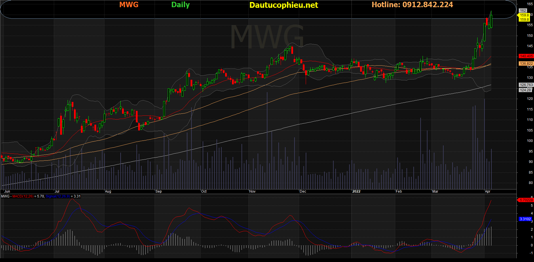 Đồ thị cổ phiếu MWG phiên giao dịch ngày 06/04/2022. Nguồn: AmiBroker