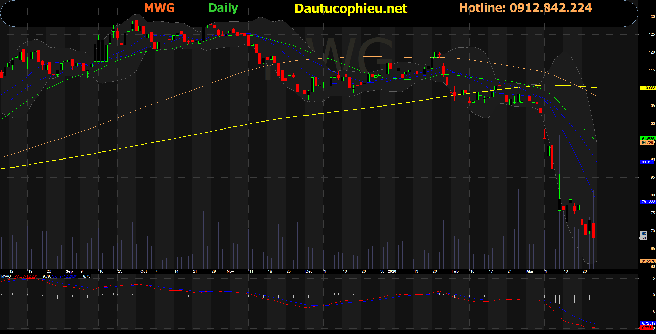 Đồ thị cổ phiếu MWG phiên giao dịch ngày 27/03/2020. Nguồn: AmiBroker.