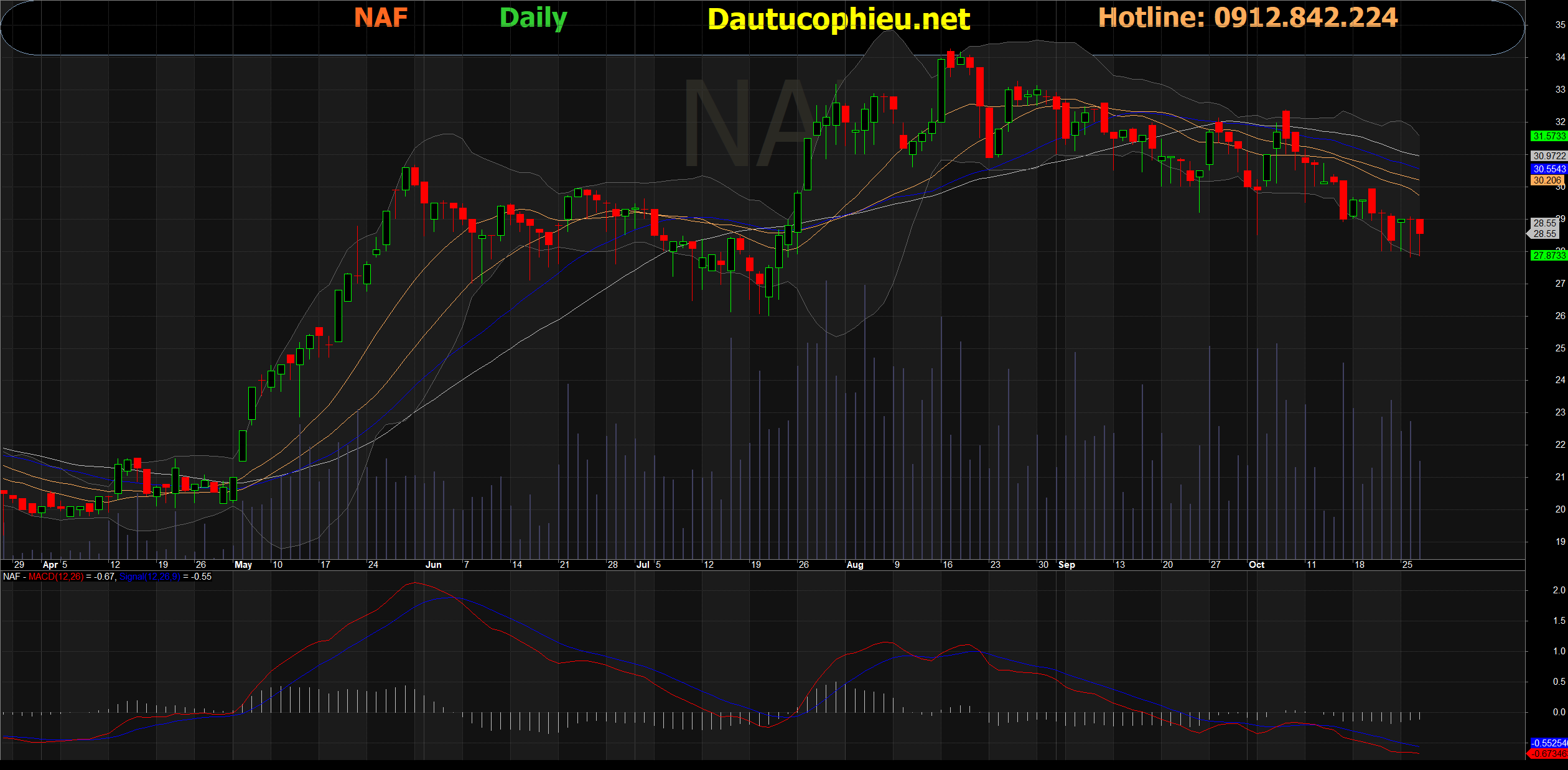 Đồ thị cổ phiếu NAF phiên giao dịch ngày 27/10/2021. Nguồn: AmiBroker