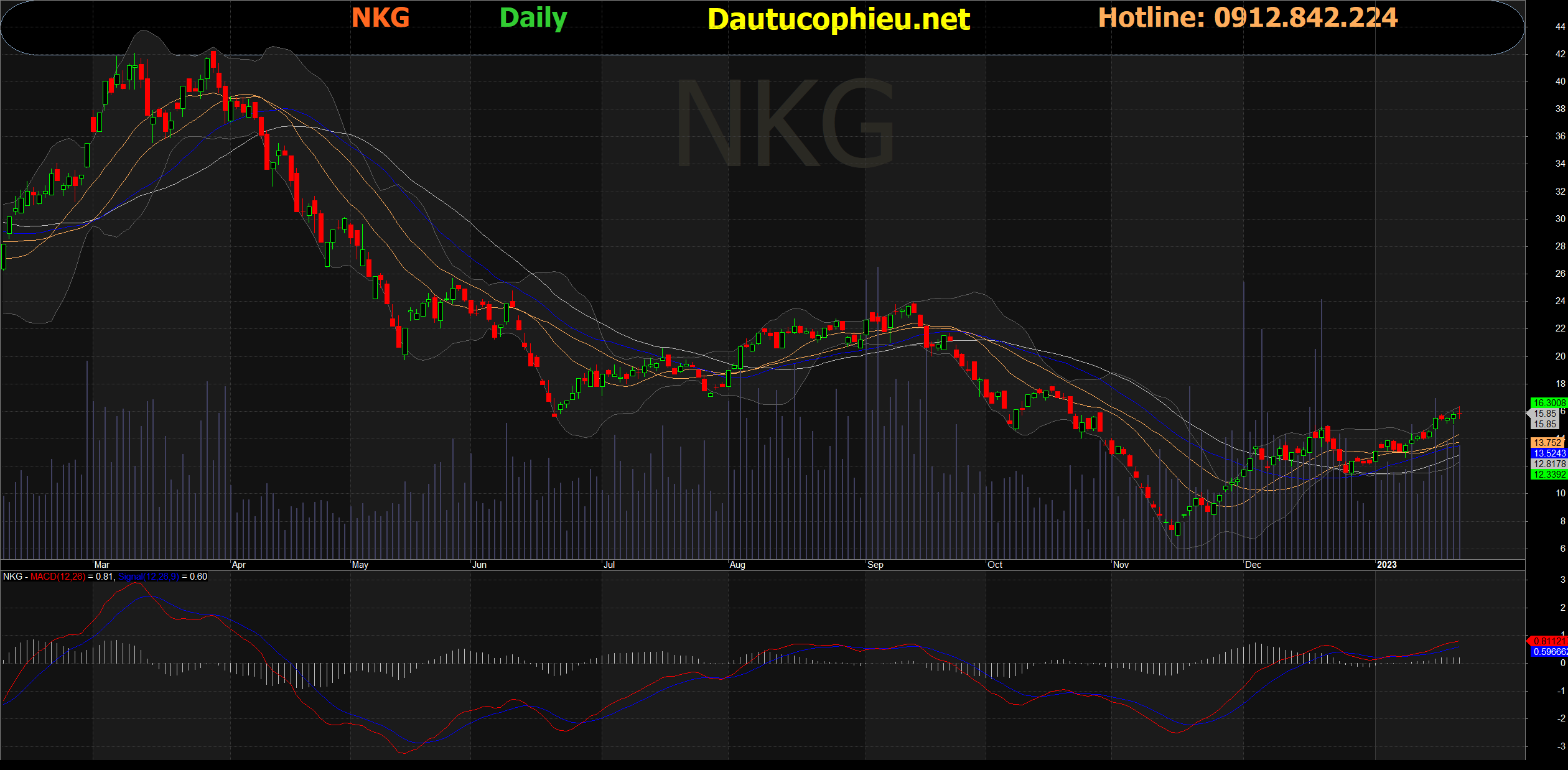 Đồ thị cổ phiếu NKG phiên giao dịch ngày 30/01/2023. Nguồn: AmiBroker