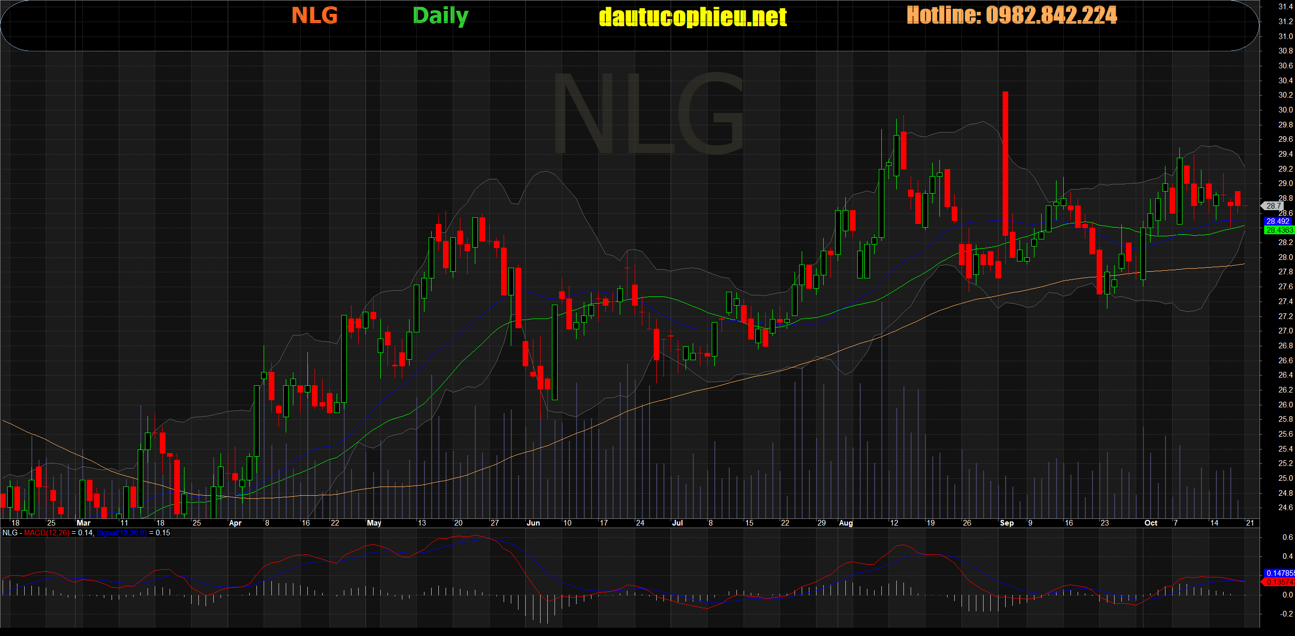 Đồ thị cổ phiếu NLG phiên giao dịch ngày 18/10/2019. Nguồn: AmiBroker
