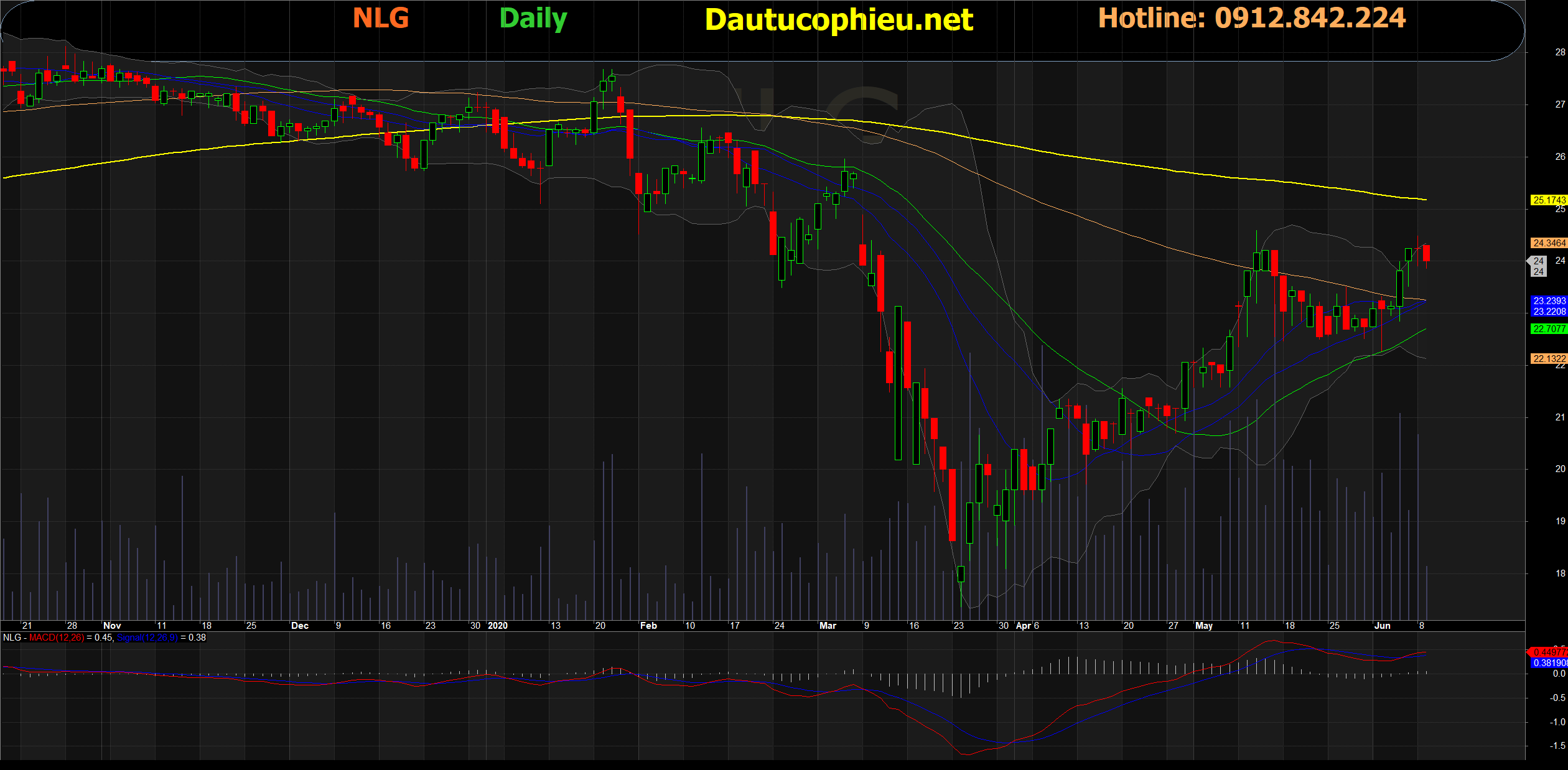 Đồ thị cổ phiếu NLG phiên giao dịch ngày 08/06/2020. Nguồn: AmiBroker