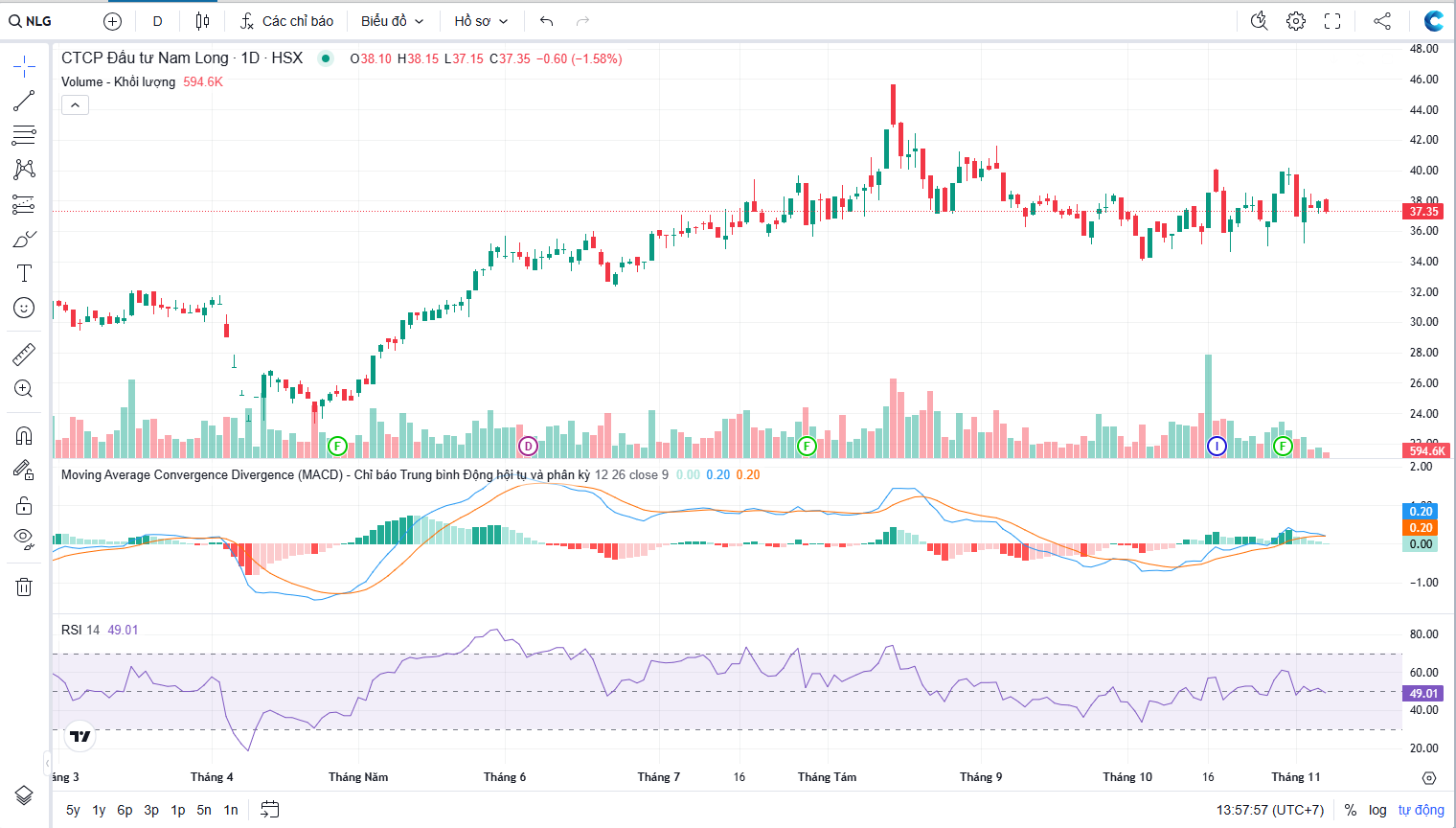 Đồ thị cổ phiếu NLG phiên giao dịch ngày 07/11/2025