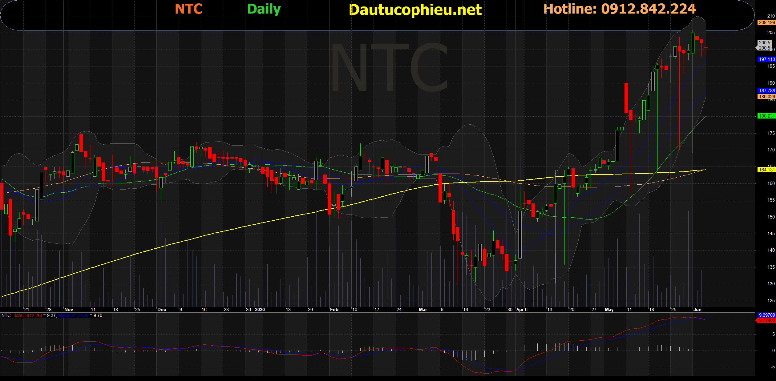 Đồ thị cổ phiếu NTC phiên giao dịch ngày 02/06/2020. Nguồn: AmiBroker