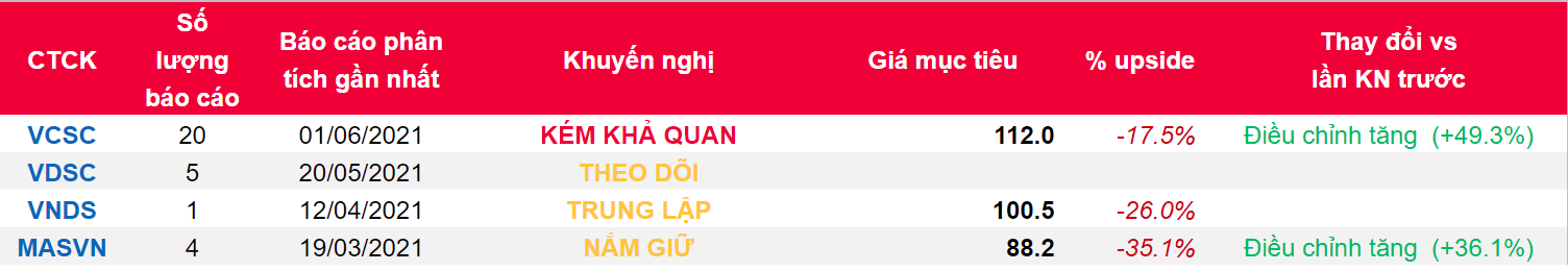 - Chúng tôi tăng giá mục tiêu cho CTCP Tập đoàn Đầu tư Địa ốc No Va (Cổ phiếu NVL) thêm 49% lên 112.000 đồng/CP khi chúng tôi ghi nhận dự án Aqua City Phoenix và các giai đoạn đầu tư mới tại dự án NovaWorld Phan Thiết sau khi công ty công bố kế hoạch hợp nhất và tiến độ triển khai dự án. Tuy nhiên, chúng tôi hạ khuyến nghị từ PHÙ HỢP THỊ TRƯỜNG còn KÉM KHẢ QUAN khi giá cổ phiếu đã tăng hơn 65% trong 3 tháng qua.
