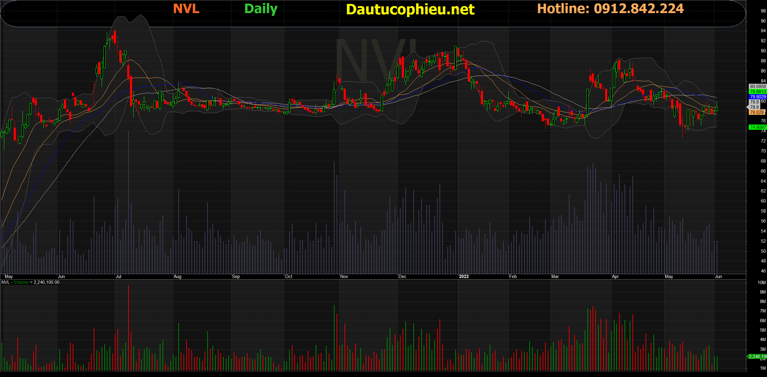 Đồ thị cổ phiếu NVL phiên giao dịch ngày 03/05/2022. Nguồn: AmiBroker