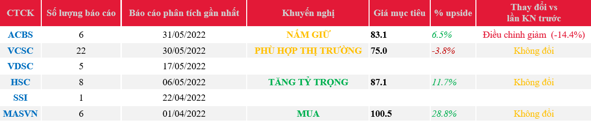 Điều chỉnh dự phóng 2022 do phản ánh KQKD Q1/2022 và những khó khăn đối với ngành BĐS. Lặp lại khuyến nghị Giữ với giá mục tiêu 83k.