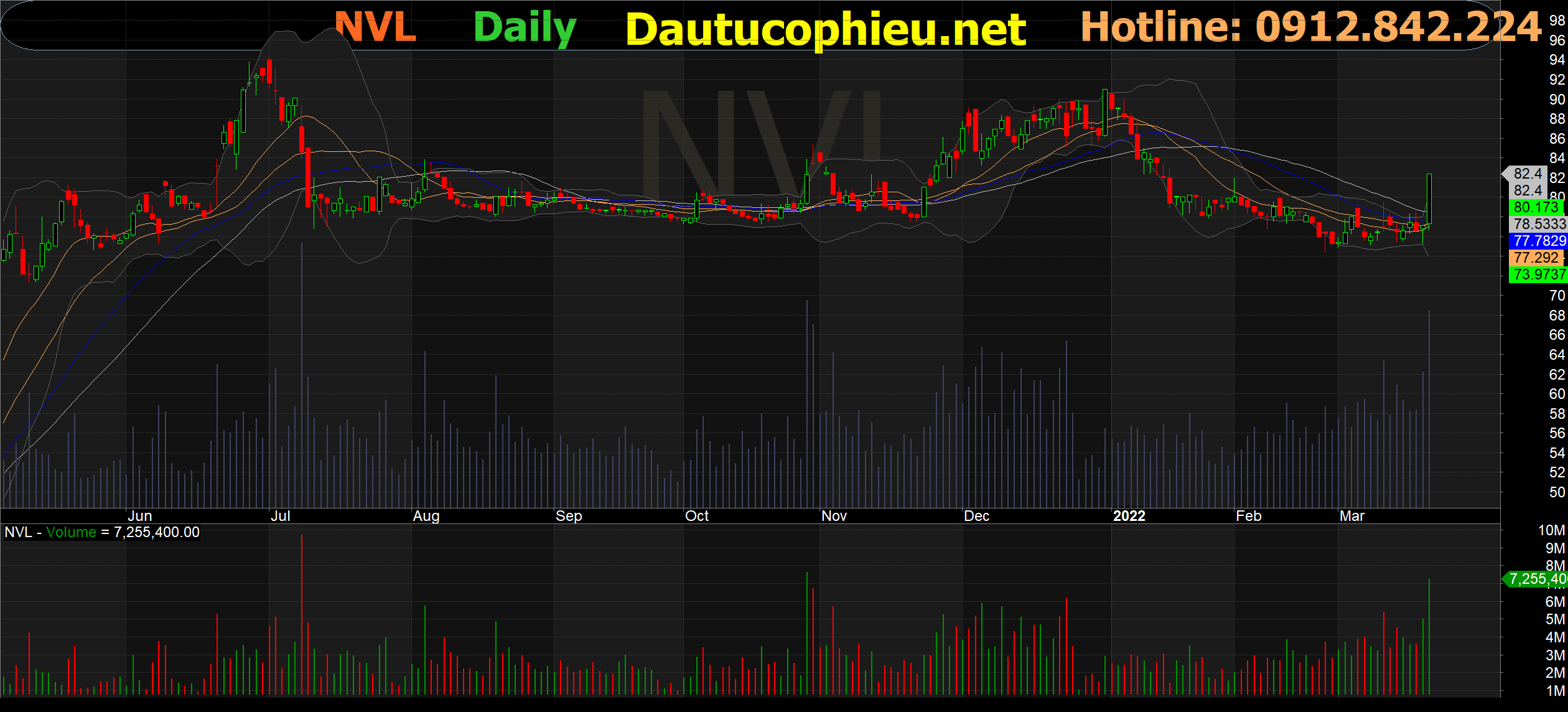 Đồ thị cổ phiếu NVL phiên giao dịch ngày 21/03/2022. Nguồn: AmiBroker