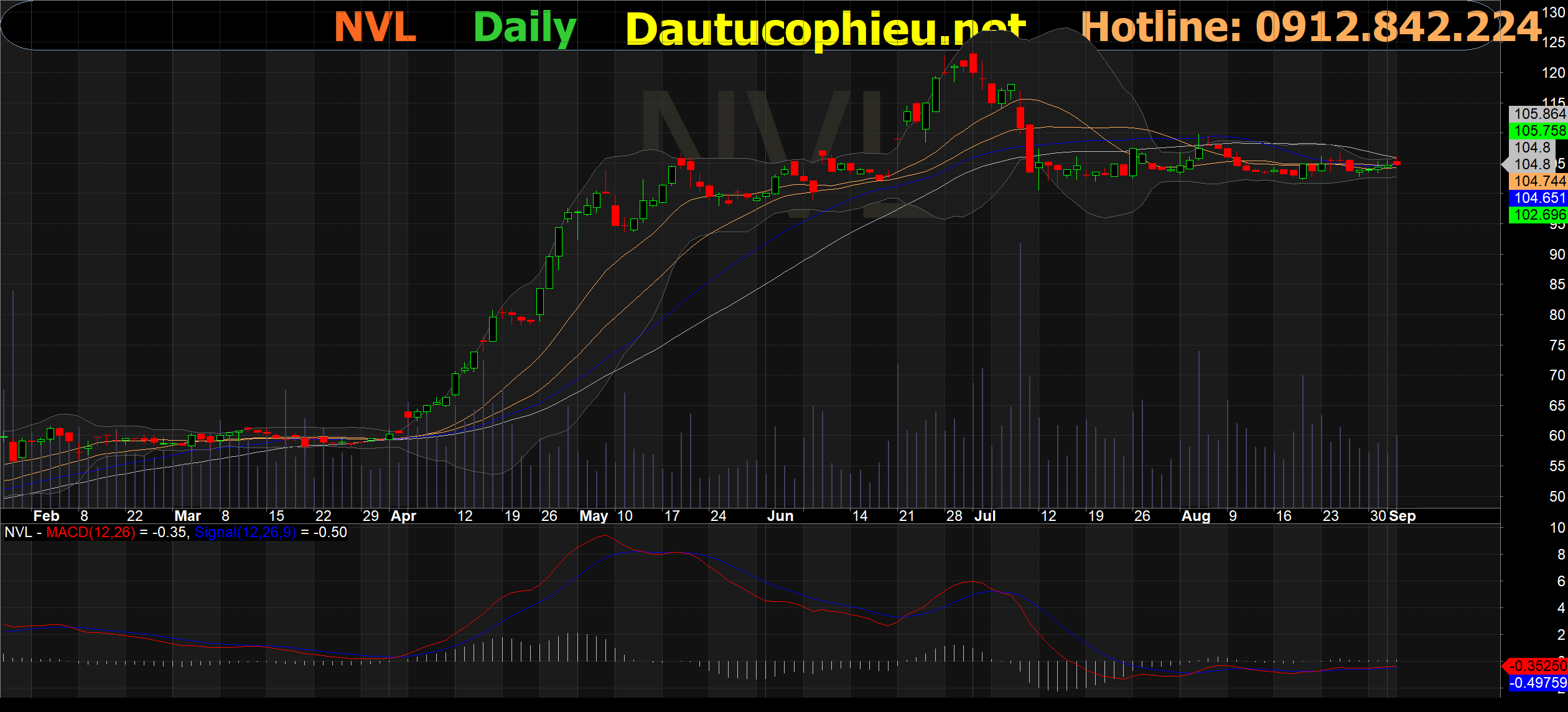 Đồ thị cổ phiếu NVL phiên giao dịch ngày 06/09/2021. Nguồn: AmiBroker
