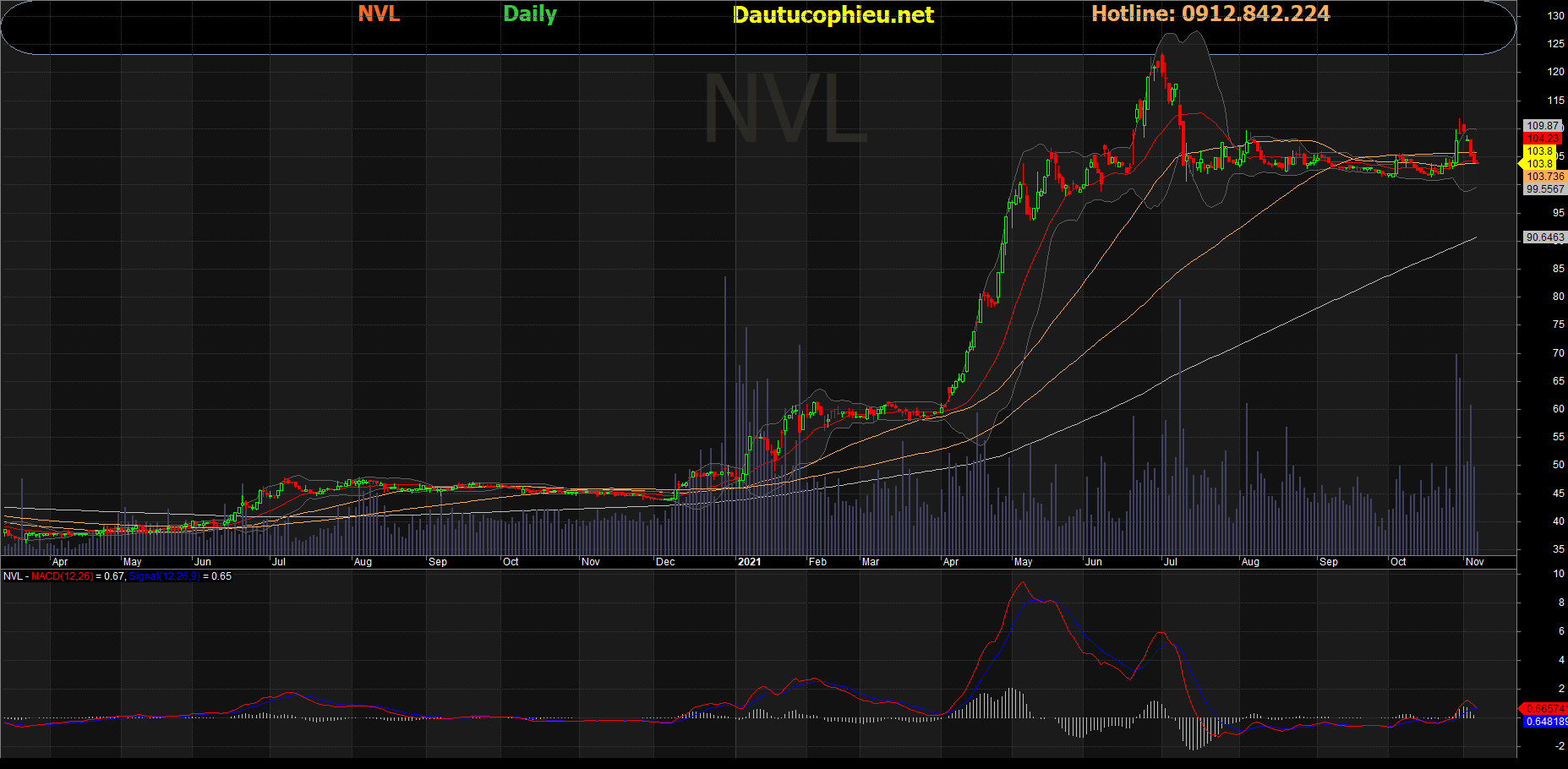 Đồ thị cổ phiếu NVL phiên giao dịch ngày 05/11/2021. Nguồn: AmiBroker