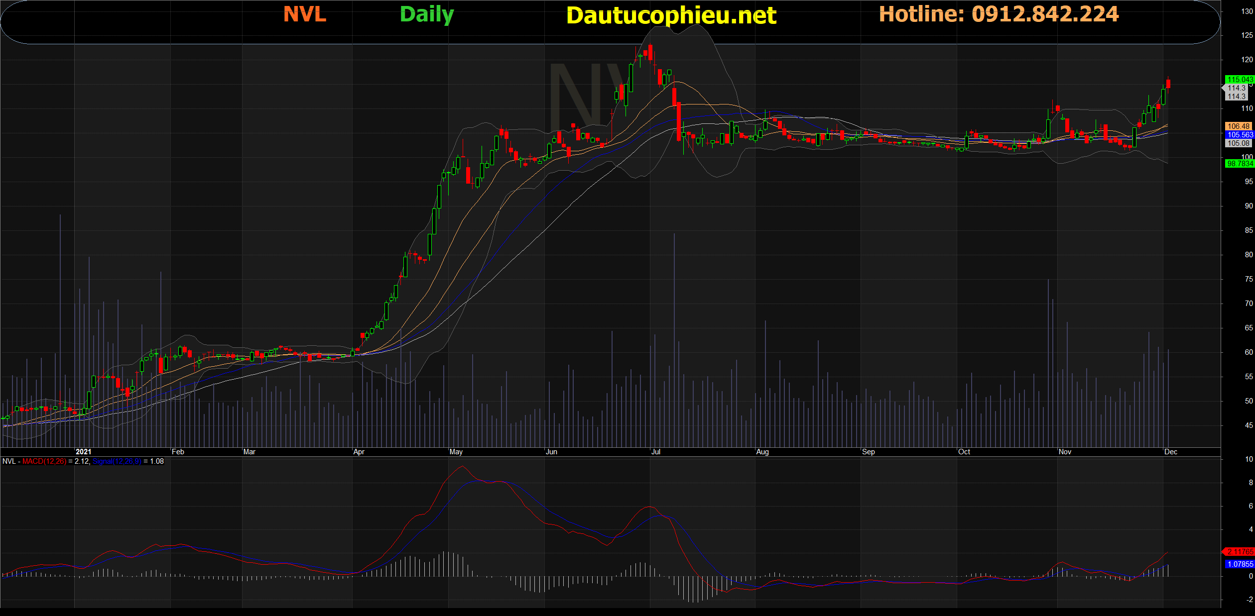 Đồ thị cổ phiếu NVL phiên giao dịch ngày 02/12/2021. Nguồn: AmiBroker
