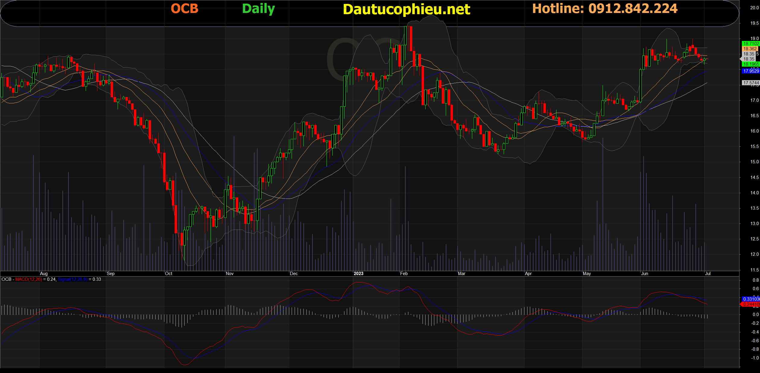 Đồ thị cổ phiếu OCB phiên giao dịch ngày 04/07/2023. Nguồn: AmiBroker