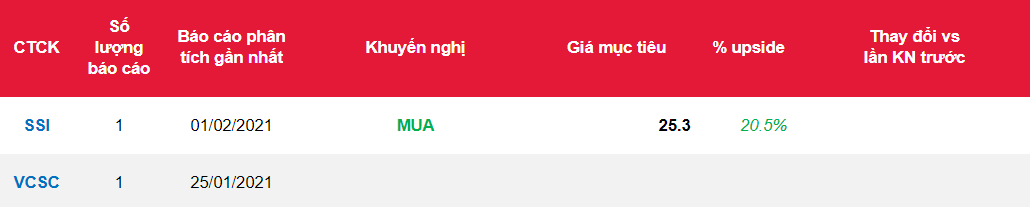 - Giá mục tiêu của chúng tôi cho ngân hàng là 25.300 đồng/ cổ phiếu, cao hơn 29% so với giá đóng cửa tại ngày 29/1/2021. Do đó, chúng tôi đưa ra khuyến nghị lần đầu là MUA đối với cổ phiếu của OCB.