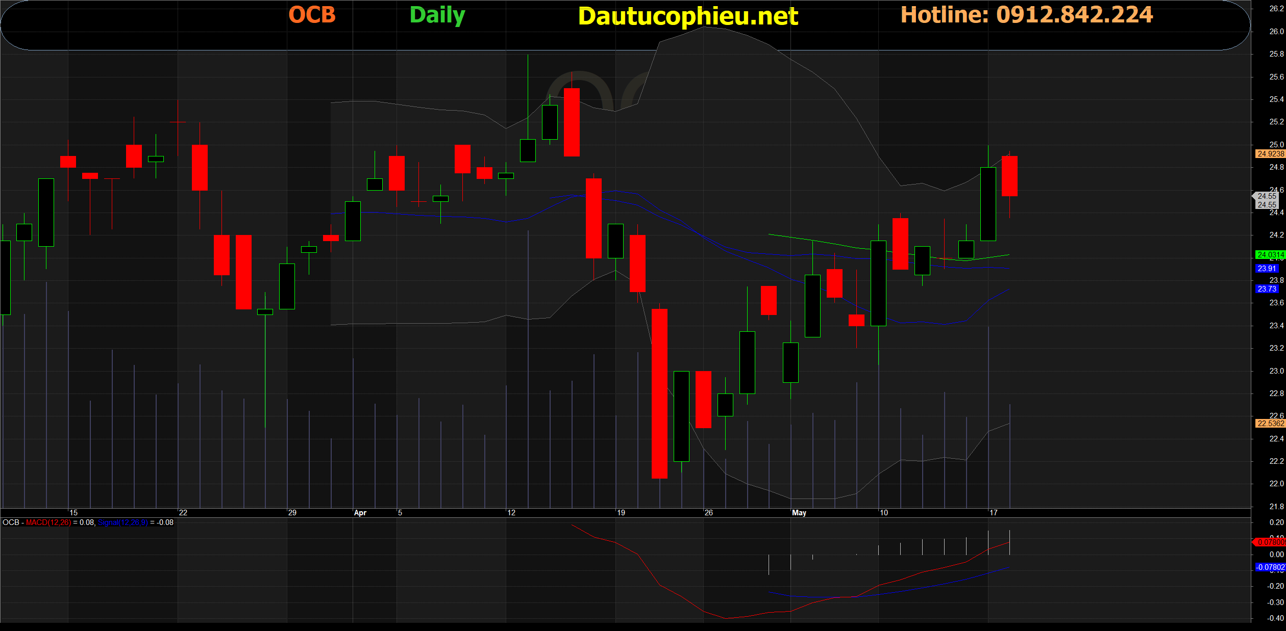 Đồ thị cổ phiếu OCB phiên giao dịch ngày 18/05/2021. Nguồn: AmiBroker