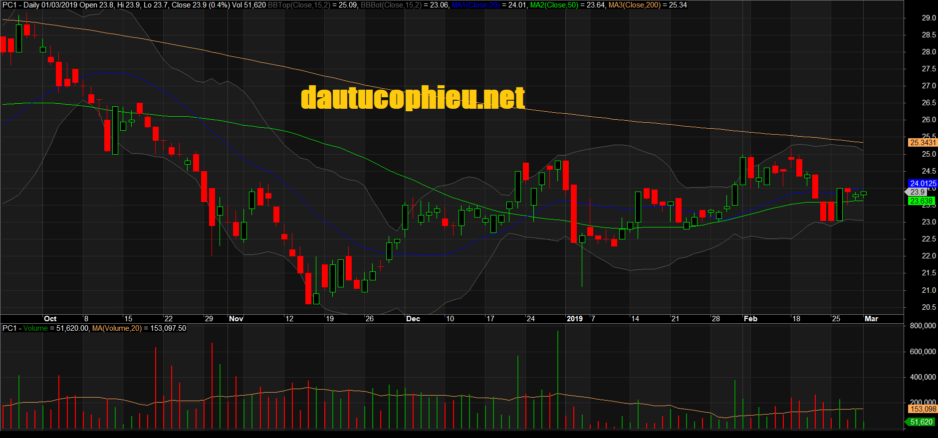 Đồ thị cổ phiếu PC1 phiên giao dịch ngày 01/03/2019. Nguồn: AmiBroker