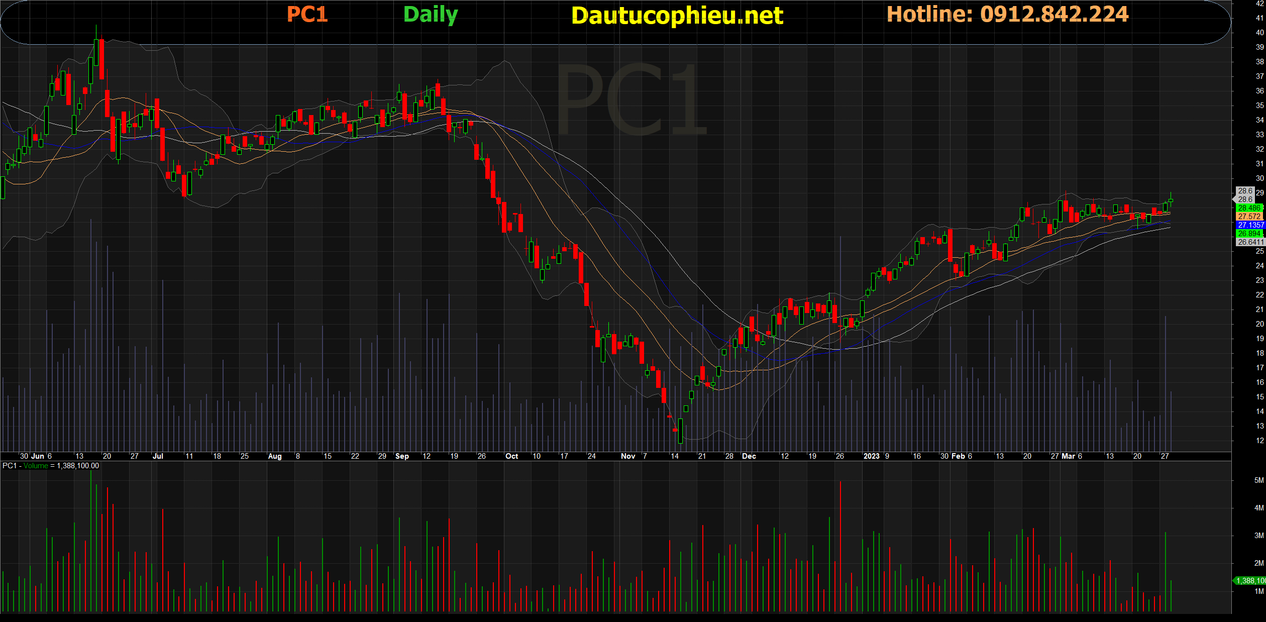 Đồ thị cổ phiếu PC1 phiên giao dịch ngày 30/03/2023. Nguồn: AmiBroker