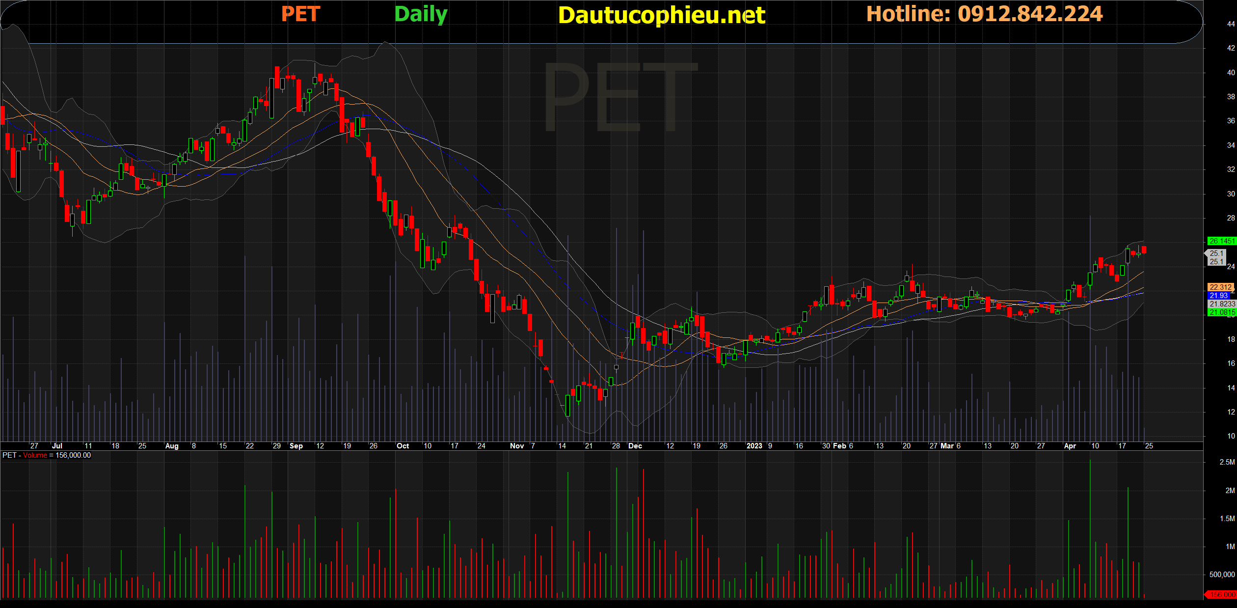 Đồ thị cổ phiếu PET phiên giao dịch ngày 25/04/2023. Nguồn: AmiBroker