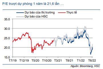Tại giá mục tiêu của chúng tôi là 56.250đ, P/E dự phóng 2022 và 2023 lần lượt là 28,6 lần và 23,0 lần.
