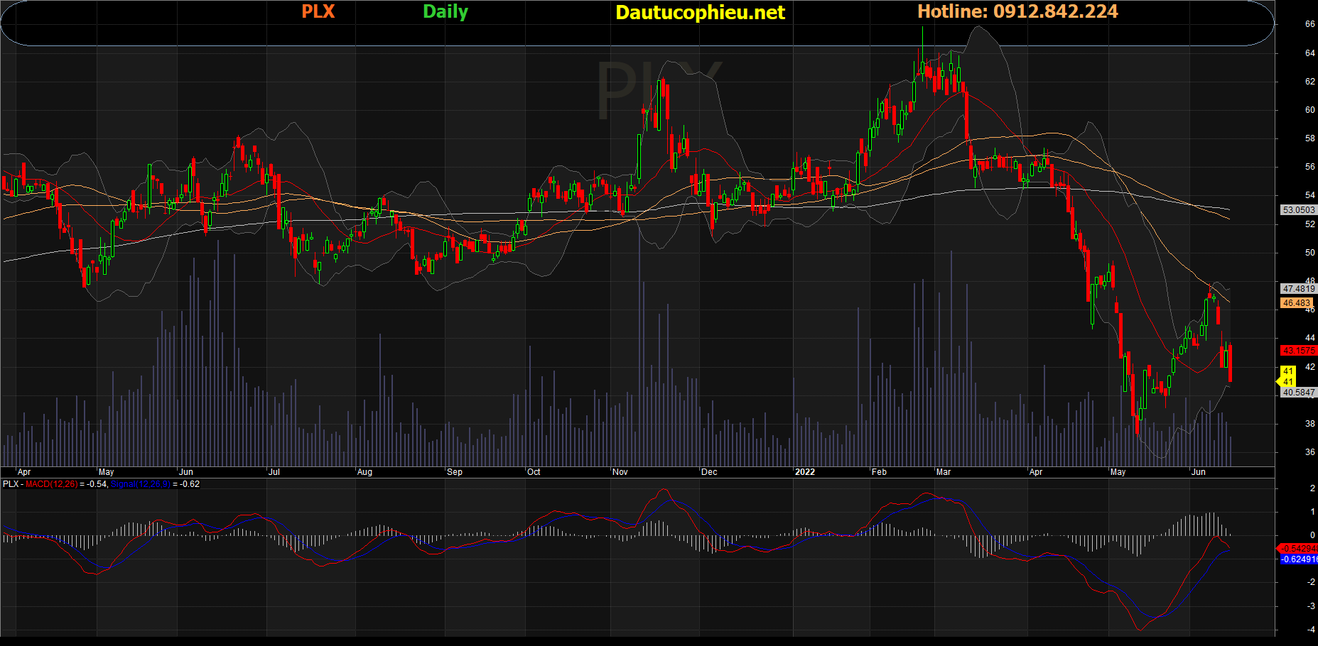 Đồ thị cổ phiếu PLX phiên giao dịch ngày 15/06/2022. Nguồn: AmiBroker