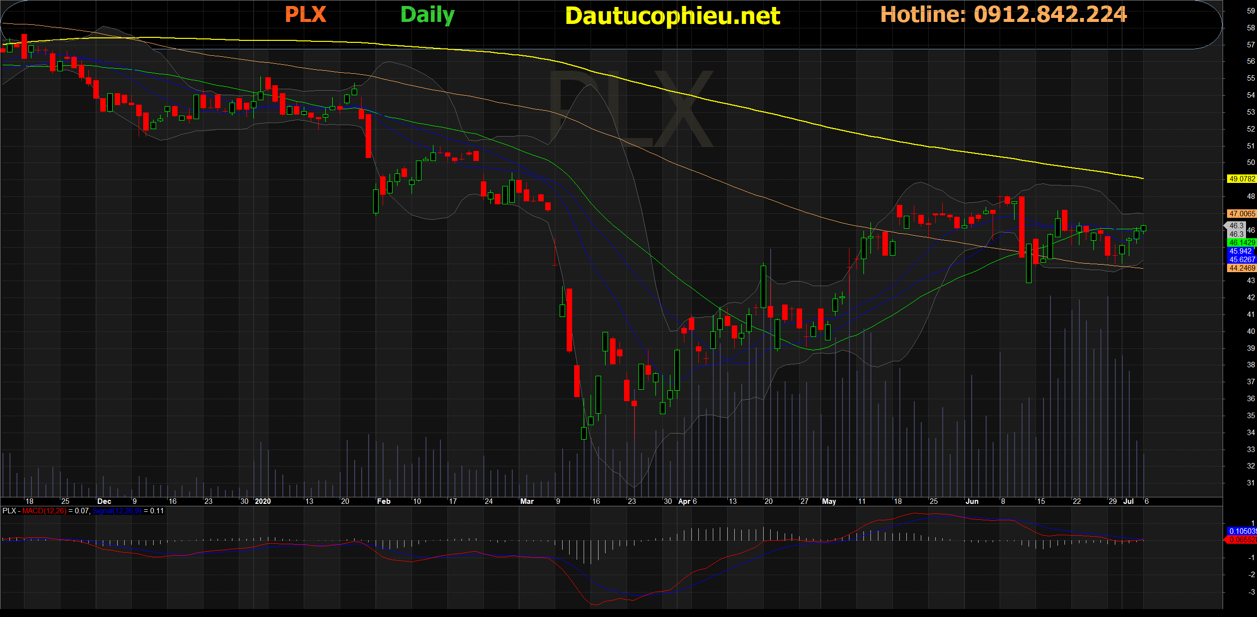 Đồ thị cổ phiếu PLX phiên giao dịch ngày 03/07/2020. Nguồn: AmiBroker