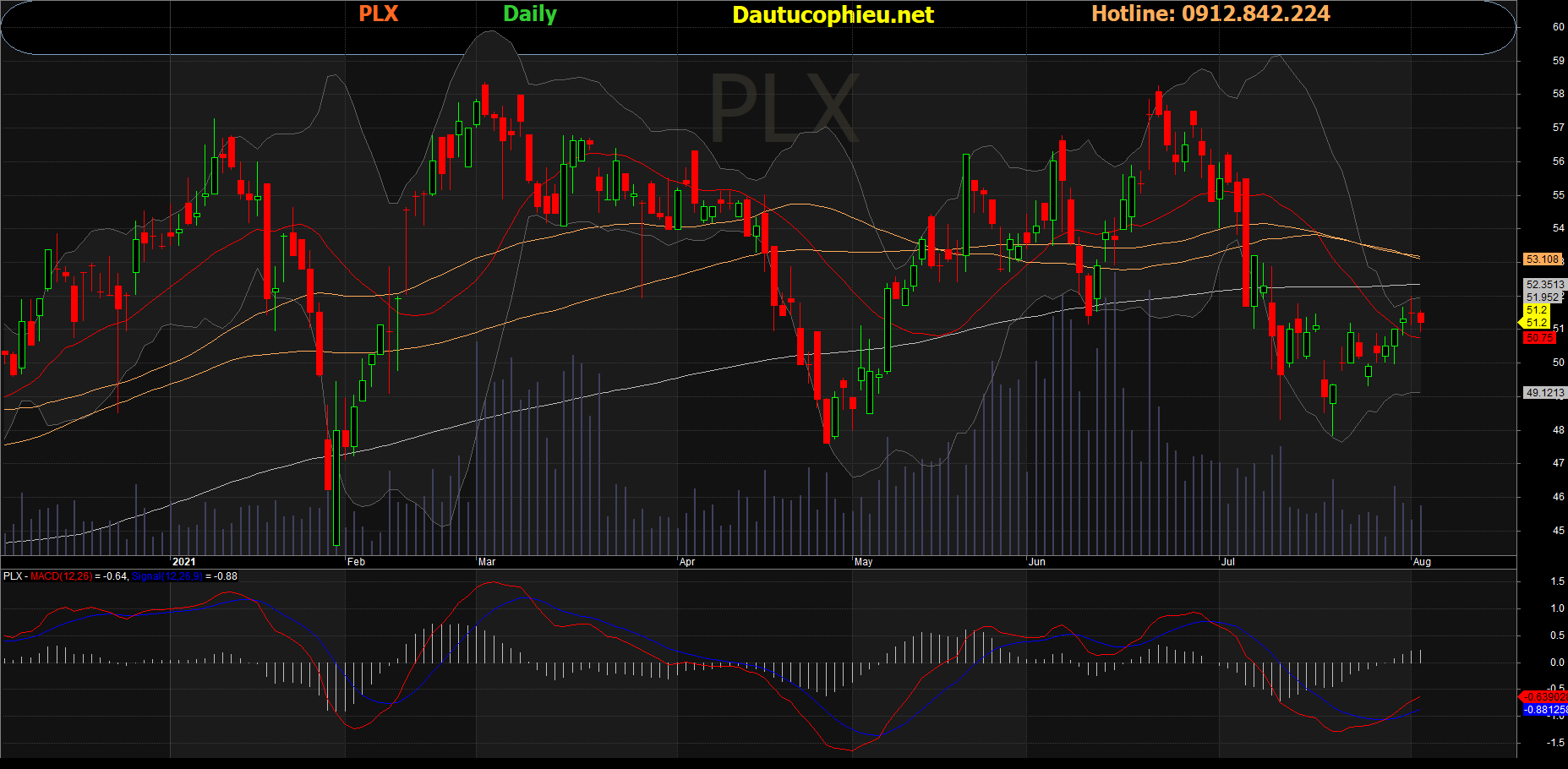 Đồ thị cổ phiếu PLX phiên giao dịch ngày 03/08/2021. Nguồn: AmiBroker